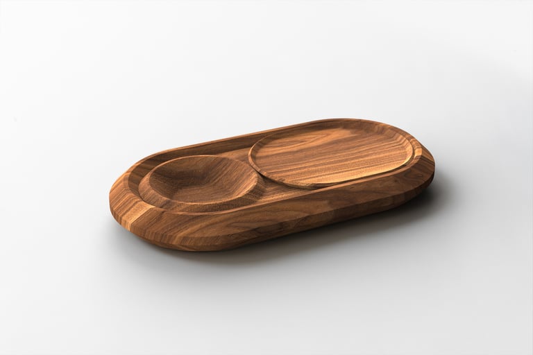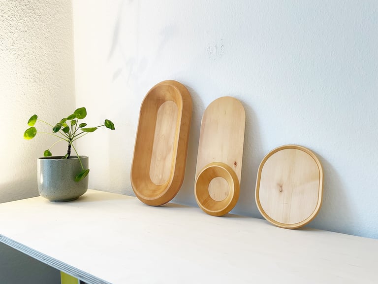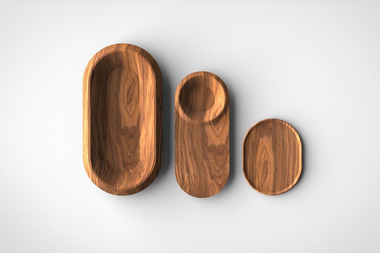 OLEA consists of a set of three differently sized bowls that nest together harmoniously to save space. Manufactured using state-of-the-art CNC technology, they still convey the personality and emotional quality of a hand-carved wooden object. From concept to production, the bowl set follows a sustainable philosophy: it is made from locally sourced wood. OLEA is perfect for special occasions – such as elegantly serving an apéro – but it also integrates beautifully into everyday life, whether as a fruit bowl or a serving dish. On request, the bowls can be sealed with a natural, plant-based oil.