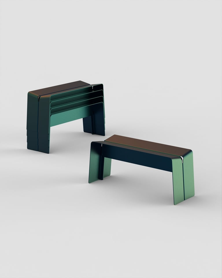 RAW is a bench with a clear architectural presence, made from two folded aluminium sheets—reduced to the essentials yet surprisingly expressive. Its raw elegance emerges directly from its structural logic and reflects Damian Byland’s design approach: transforming industrial materials into functional everyday objects through minimal, precise interventions. The anodised surface protects against weather and scratches, making RAW suitable for both indoor and outdoor use. The entire bench—including all screws—is made from 100% aluminium, making it fully recyclable by material type. This consistent choice of material enables a closed-loop system and emphasises the commitment to durability. Byland is currently working on a stackable version to make RAW even more versatile for use in public spaces.