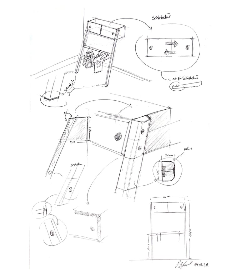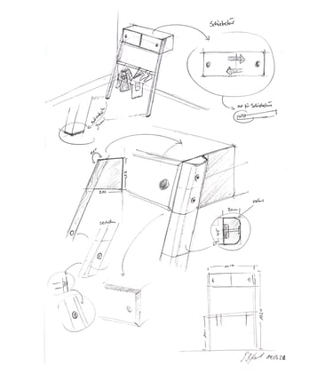 At studiobyland, every design begins with a sketch. Through freehand drawing, first ideas become visible, shapes are tested and proportions refined.This way, quick variations emerge that help us have a clear dialogue with our clients and make intuitive decisions together. The sketching process keeps the project flexible – until it crystallises into a clear, coherent concept.